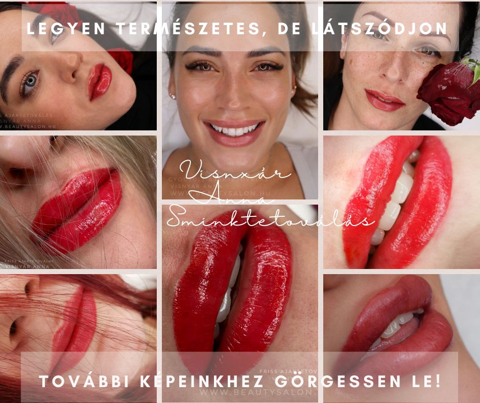 „Ezt tudja adni egy veled harmonizáló gyógyult ajaktetoválás: Az évek során ajkaink veszítenek teltségükből, nem rajzolódik ki olyan formásan az ajkak széle. Ezen tud javítani egy szép ajaktetoválás, amitől újra több lesz az önbizalmad és üdébb a megjelenésed. Ma már a sminktetoválás semmikép sem csak egy erős sminkelt hatást ad számunkra, de a finom szépítésére is. ” Visnyár Anna
